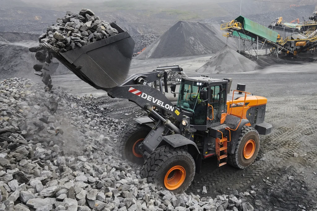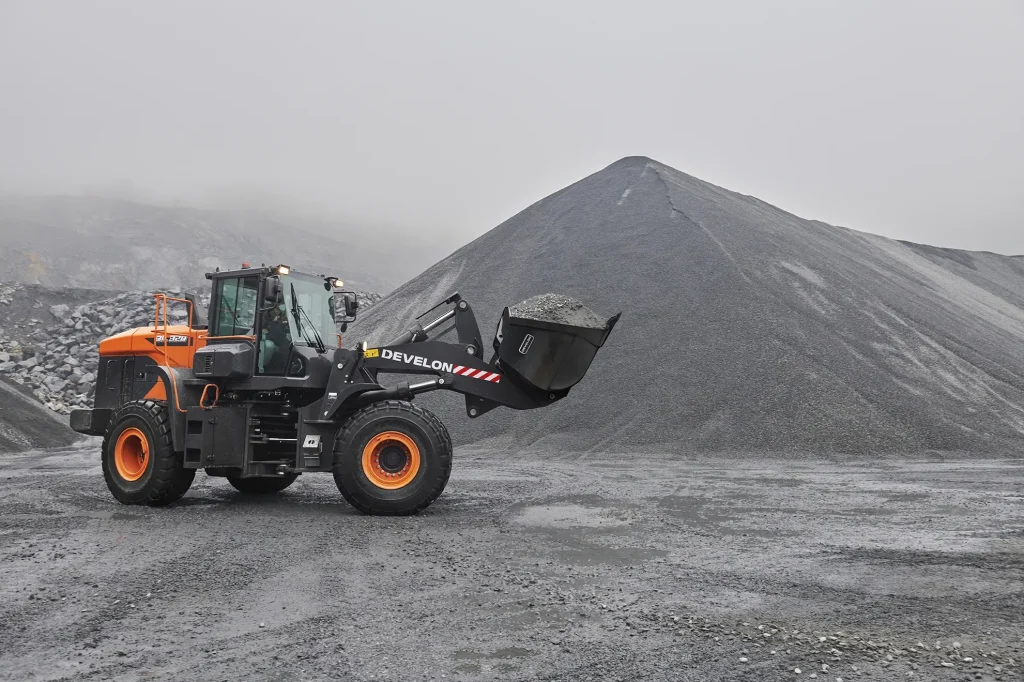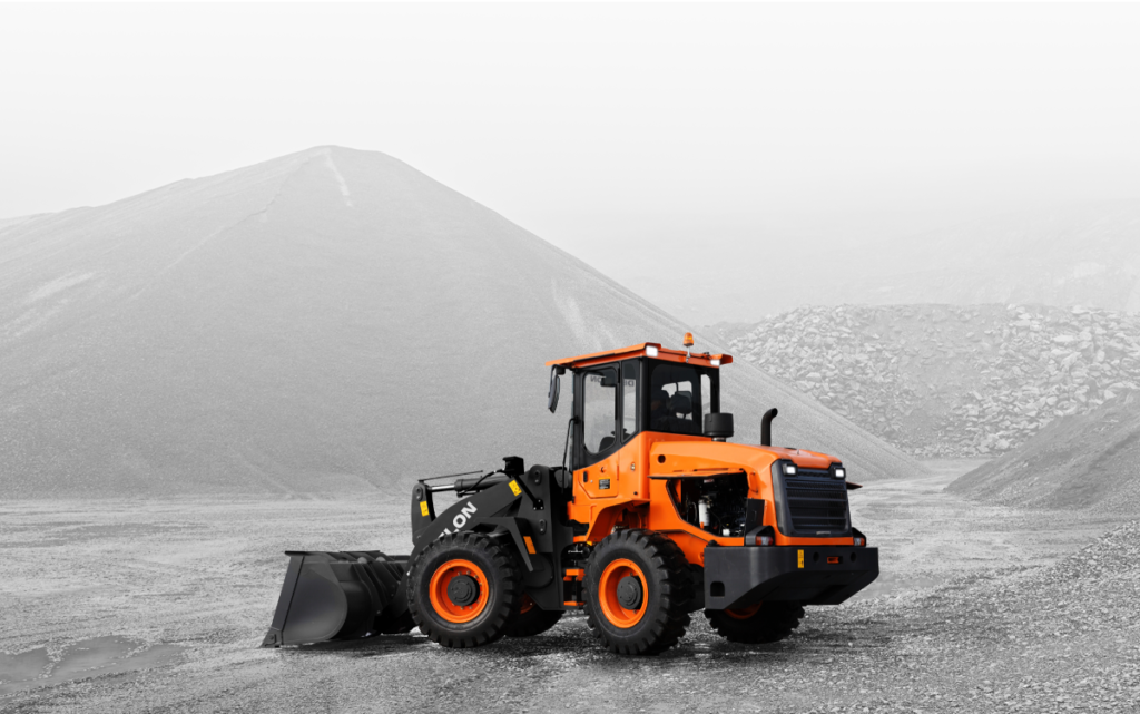 Pá-carregadeira de rodas com peso operacional máximo de 19ton, modelo DL320-7M, equipada com motor a diesel DEVELON de 06 (seis) cilindros em linha, caçamba com capacidade de carga máxima de 3,5m³, carga de tombamento de 14,355kg (reta), velocidade máxima de 34,1km⁄h a frente e 23,2km/h a ré, freios a disco banhado a óleo, cabine fechada ROPS e FOPS com ar condicionado, espelhos retrovisores interno e externos.