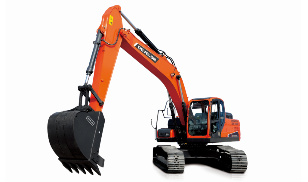 Escavadeira de esteira de aço de 700mm, modelo DX220LC-7M, equipada com motor a diesel DEVELON de 06 (seis) cilindros em linha, potência de 154HP, lança de 5,7m, braço de 2,90m, linha hidráulica de rompedor, alavanca de operação do hidráulico através de Joystick, profundidade máxima de escavação de 6,592m, caçamba padrão com capacidade de carga de 1,24m³ com dentes, força de escavação na caçamba de 14,5ton, cabine fechada ROPS com ar condicionado, painel tipo touch screen.