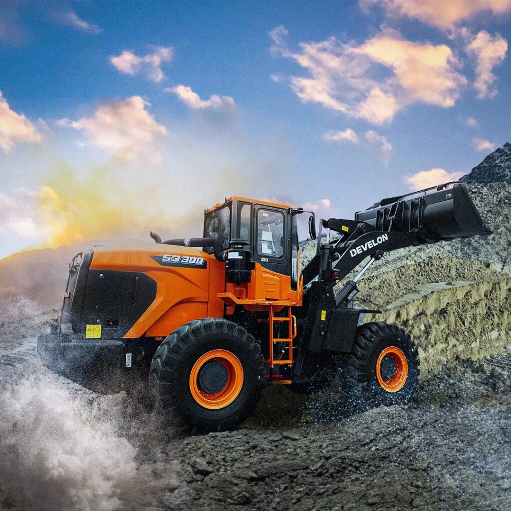 Pá-carregadeira de rodas com peso operacional máximo de 17ton, modelo SD300, equipada com motor a diesel WEICHEI de 06 (seis) cilindros, potência de 206HP, pré-filtro de ar, filtro de ar do motor duplo, filtragem dupla de combustível, braços frontais em Z, proporcionando maior elevação e resistência, caçamba padrão com capacidade de carga de 2,7m³ com dentes, capacidade de carga de 5,0ton na caçamba, carga de tombamento de 11,3ton (reta), velocidade máxima de 36km⁄h, freios a disco tipo seco, ar condicionado, giroflex e caixa de ferramentas.